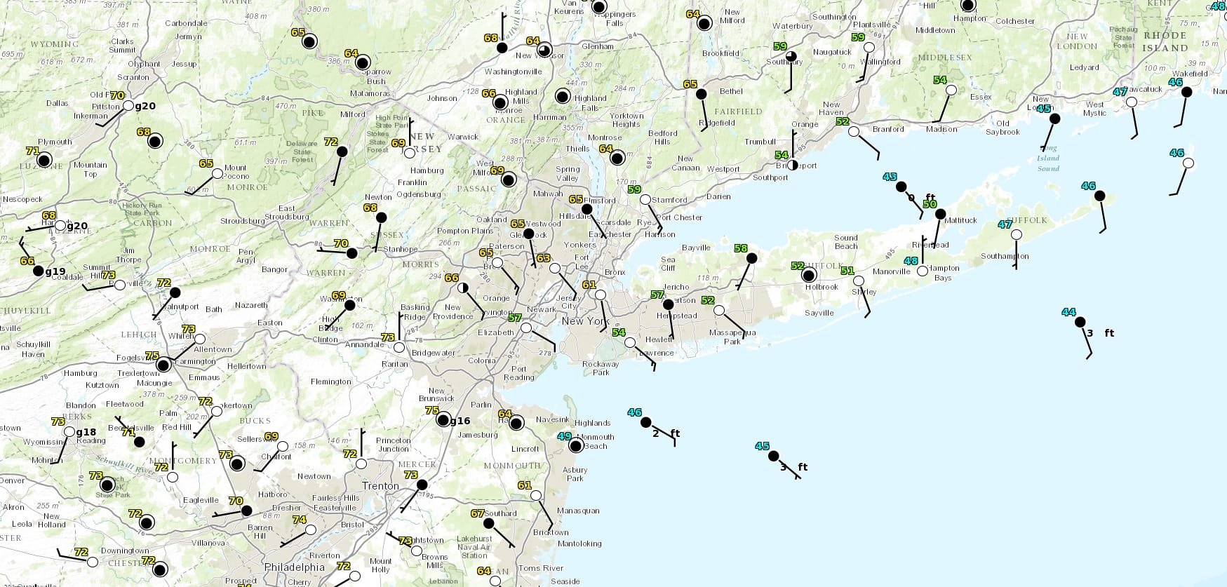Based on these 3pm temperatures today which beat models by 5 degrees or more, 80 is doable Wednesday for many areas away from the ocean. For Long Island and Coastal Connecticut 70s are possible before the sea breeze develops and takes temperatures back down. But for inland New Jersey and Southeastern Pennsylvania there really isn’t much to stop it. Today’s temperatures away from the ocean made it into the middle 70s in some places with relative ease. On the other hand you can see how the southeast and south winds over coastal areas are impacting temperatures.
