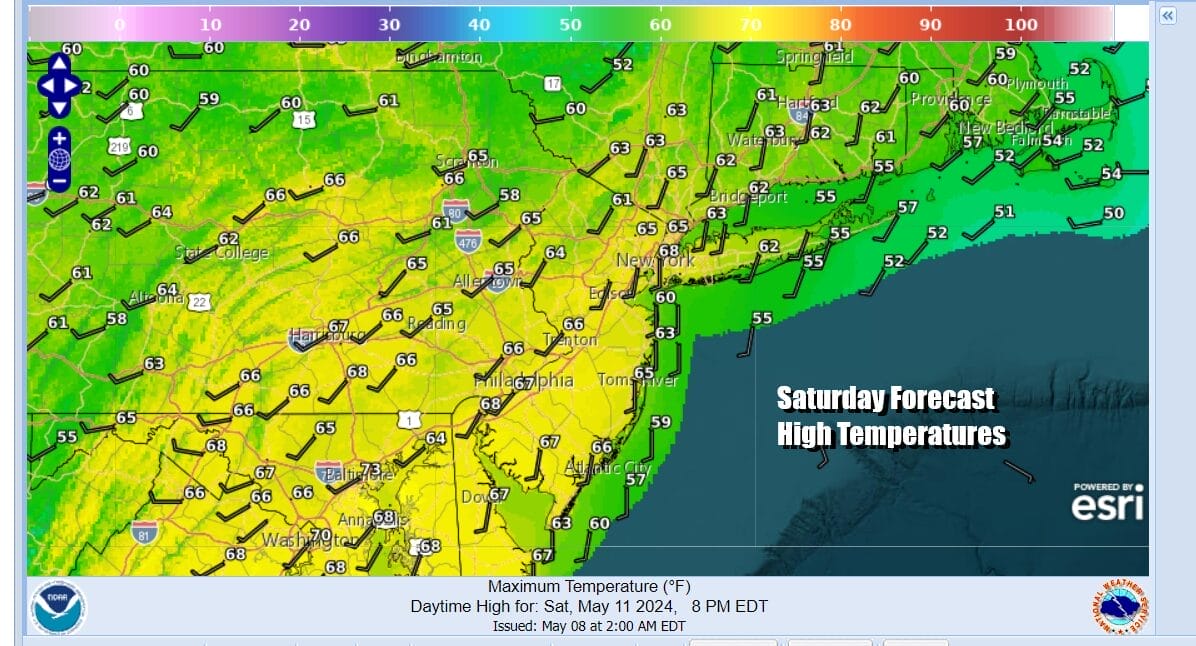 Tonight and Sunday which is of course Mother’s Day, an upper trough and weak front will move through and with it will come some some showers overnight into Sunday afternoon. It doesn’t rain all day and it doesn’t rain everywhere all at once so there will be some dry periods but in between all that, probably we will see lots of clouds with highs again mostly in the 60s.