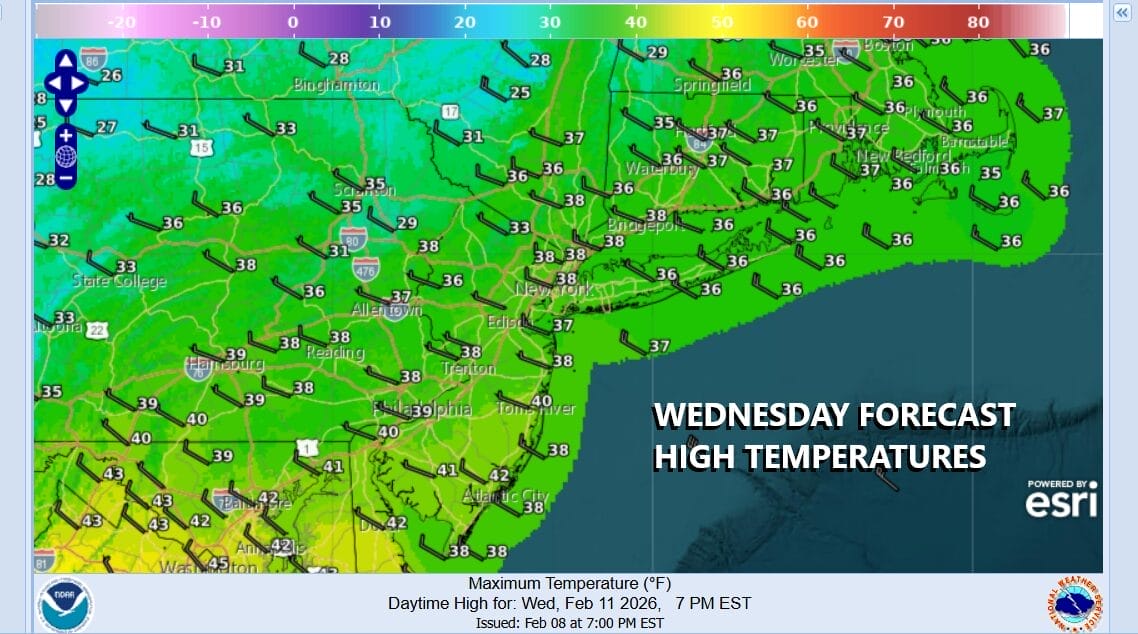 In some respects, this is going to feel like a warm spring day compared to where we have been. A cold front has passed and there is colder air waiting to come back southward but that will wait until this evening and tonight. It is not arctic cold so yes we will see below average temperatures over the next few days but not by much and by no means will it be anything extreme. Skies today should be no worse than partly sunny though there is an upper trough that has to move through, producing clouds from time to time. Highs today will be in the upper 30s to lower 40s just about everywhere.