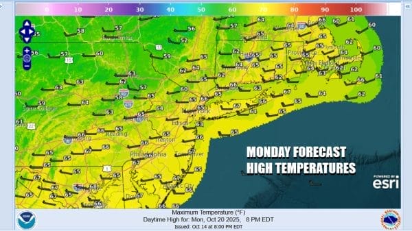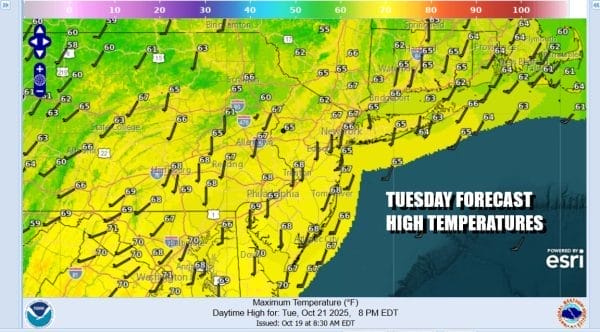 Along with the unstable air, we will be experiencing a stair step decline in temperatures this week with the coolest air settling in for Thursday and Friday. A pattern like this doesn’t allow for major weather systems to develop in the Eastern US. We have a second weather front that will approach late Tuesday and Tuesday night. While there might be the risk for scattered showers with the front, the rain won’t amount to much.
