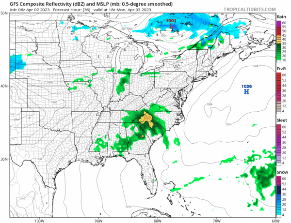 Friday will turn drier and much cooler behind this next cold front and highs will be back in the 50s with sunshine. Right now we think the Easter Weekend will be dry and seasonal as long as low pressure to the south stays to the south, and right now it appears that it will do just that.