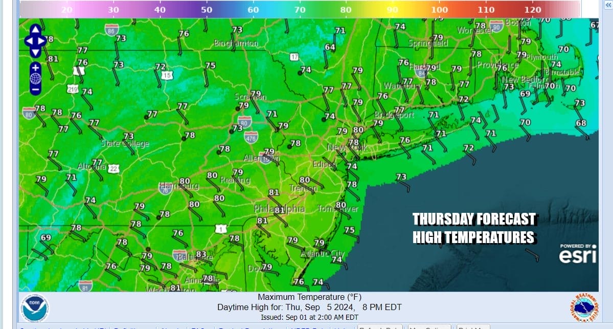 Today is the 4th day in a row of blue skies and sunshine but it is likely the last day of this current stretch. September often times provides spectacular weather days and these last for days have indeed been exceptional. We have mostly cloud free conditions on the satellite loops and radars remain nice and quiet so look for lots of sunshine today. Winds will be turning onshore and that will keep temperatures mostly in the 70s. Some warm spots well inland might approach 80 while along the coast, lower 70s will be commonplace.