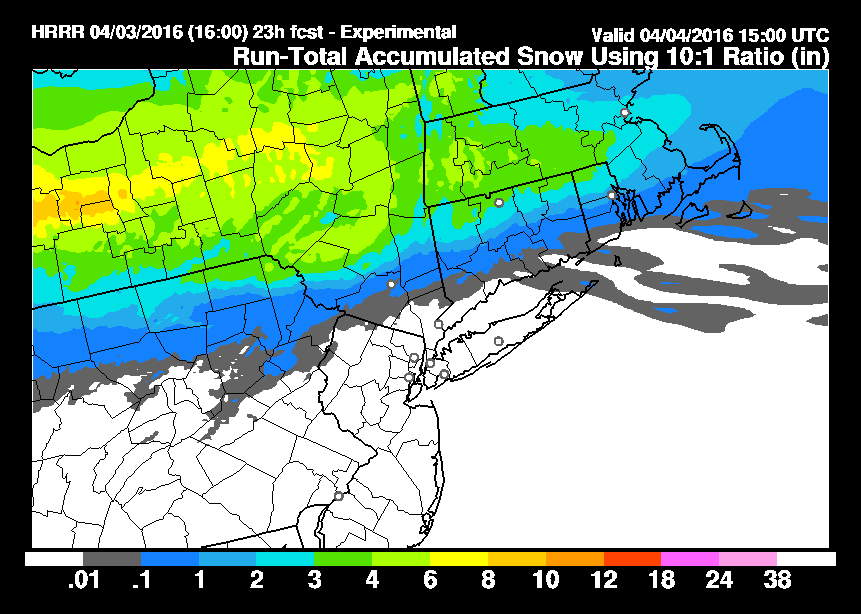 On the other hand, if the low tracks just to the north we could see light rain here for awhile and temperatures warming up toward 50. However all the models do show the front and the wave sagging south of Long Island and New Jersey during the afternoon. This will bring back chilly temperatures and perhaps a change back to wet snow late in the afternoon and evening before it all comes to an end early Monday night.