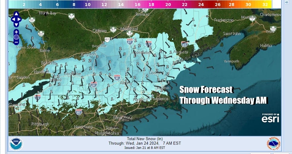 Tuesday we will be on the edge of a weather front that will cut across the Northeast. High pressure to the north has some cold air that will wedge into Upstate NY and New England. To the south warmer air but we are seeing a limited warm up develop. The result Tuesday will be lots of clouds. Across Upstate NY and into New England we will see light snow as well as some pockets of sleet and freezing rain developing. From Northern Pennsylvania and Northern New Jersey northward into the Hudson Valley as well as Southern New England, we could see pockets of cold air being trapped and that could result in some icing.