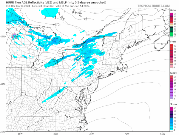 These squalls, if they happen because some of you won’t see them, will probably be in the early to mid afternoon. The arctic boundary will go by. Gusty winds will be occurring on either side of the arctic front today. Look for sunshine giving way to clouds. The front will pass through. High temperatures will be in the mid to upper 30s and then drop into the upper 20s by evening.