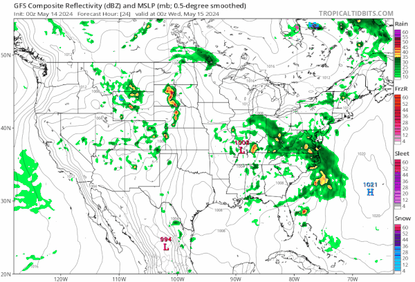 This Tuesday is going to start out with sunshine but on the satellite and radar loops we are seeing the next storm system that is coming out of the Middle Mississippi Valley and heading slowly eastward, taking a track across the Lower Ohio & Tennessee Valley and eventually emerging off the coast of the Delmarva Peninsula during Wednesday. Clouds will probably arrive later today and there might be a few scattered showers around late this afternoon and evening but they should be scattered in nature. Temperatures today will be mostly in the 70s except cooler along south and east facing shorelines.