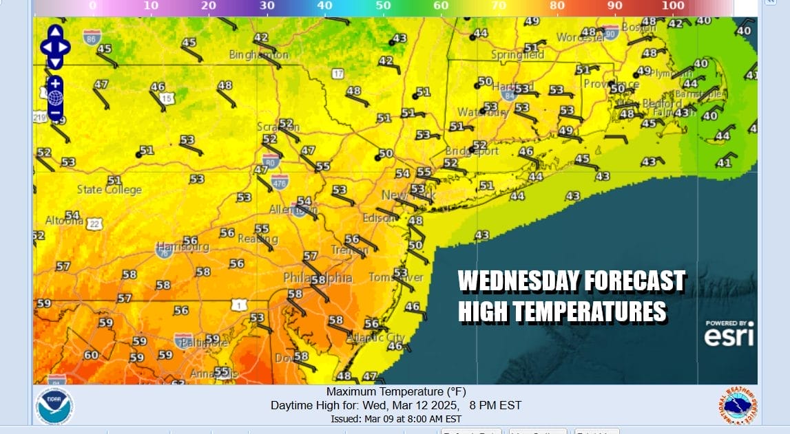Sunday will be windy and warm. The Storm Prediction Center has already indicated a “slight” risk for severe weather late in the day as the front arrives so prepare for showers and thunderstorms Thursday afternoon and evening. Sunday highs will be in the 60s with some inland highs near 70 while the wind off the ocean will keep the coast a bit cooler. The front may stall for a short time Sunday night into Monday so we will likely see lingering showers into the first part of Monday before weather conditions improve.