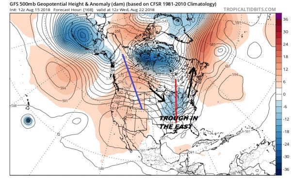 These last 4 weeks across the Northeast and Middle Atlantic States have not been easy. The humidity has been unrelenting except for the odd day here and there. The rainfall has been excessive to extreme with some areas seeing the most  rain in over 100 years and measured in feet. The trough keeps coming back to the Eastern US and next week we see weather models battling again over whether we will see another trough park itself in the East and threaten again with rounds of downpours and thunderstorms.