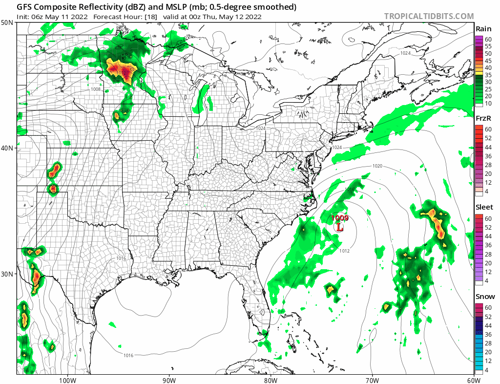 Models are showing these rain patches coming up at times over the weekend but I would think that most of the time it should be dry. Changeable sky conditions with some sun breaking through clouds at times should be the rule over the weekend. Temperatures will be mostly in the 70s and again warmer north cooler south. Models show a cold front approaching Monday and I am leaning toward the prospect of thunderstorms late in the day and the risk that ere could be some severe weather late Monday. The upper trough on the European looks more dynamic and the GFS model seems to be inching at that direction. We will just put it out there for now.