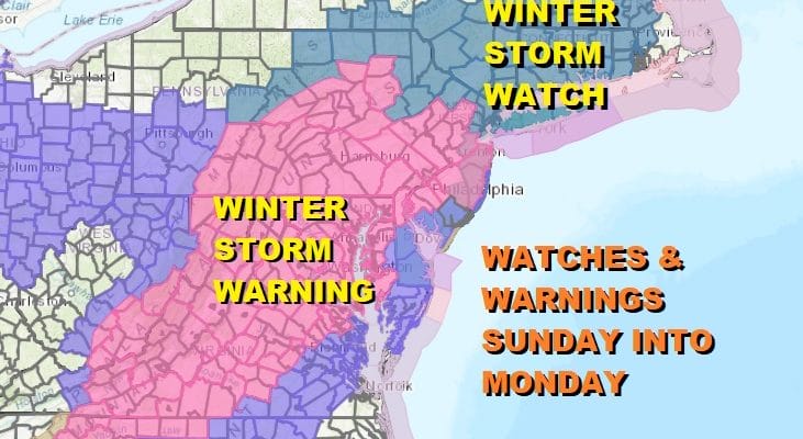 Winter Storm Warnings Most of New Jersey Eastern Pennsylvania Maryland Virginia