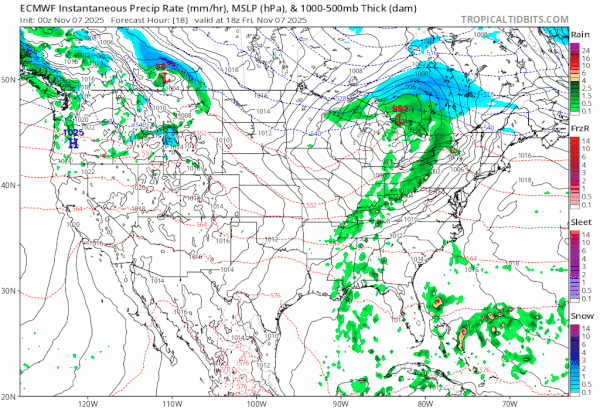 We have two cold fronts to deal with this weekend. The first one is approaching from the Great Lakes and Ohio Valley. We already have some clouds that are arriving with this front but rain should stay way until after sunset. Temperatures today will reach the 60s. Then we will get into some showers tonight lasting into early Saturday morning. There might be a heavier downpour or two in the mix but rainfall is not likely to amount to much. Most places will see less than a quarter of an inch and in some places less than a tenth of an inch or less.