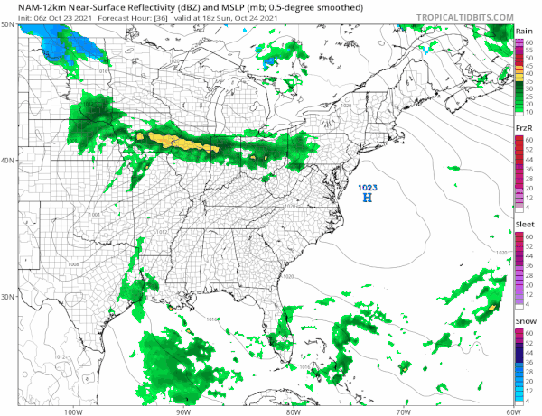 Once the next front passes this evening skies should clear out later today with most lows in the mid 40s to lower 60s. This sets us up for a decent day on Sunday. We should start with sunshine and then deal with some arriving high clouds from west to east during the afternoon. Highs will be mostly in a range of 60 to 65. The dayside Sunday should be rain free.