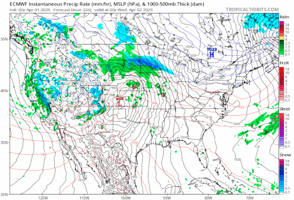 While our weather remains relatively calm, a new storm system is forming today in the Central Plains. This will bring another round of severe weather today for the Central and Southern Plains as well as parts of the Middle Mississippi Valley. Wednesday the storm will be in the Northwestern Great Lakes with a trailing cold front. Another day of widespread severe weather is expected up and down the Mississippi Valley as well as the Ohio & Tennessee Valleys.