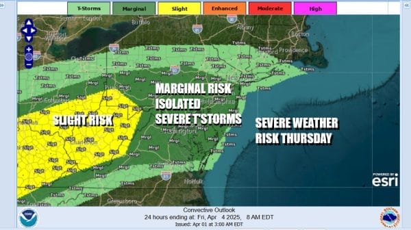 The front moves southward Thursday night and we will likely see some shower and thunderstorm activity. The risk time could begin as early as Thursday evening but the bulk of this will likely be Thursday night into Friday morning. The Storm Prediction Center is indicating a marginal risk for isolated severe thunderstorms when the front passes late Thursday night or early Friday morning.
