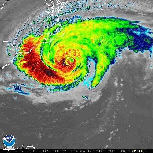 HURRICANE FLORENCE CATEGORY 2 NEARING CAROLINA COAST