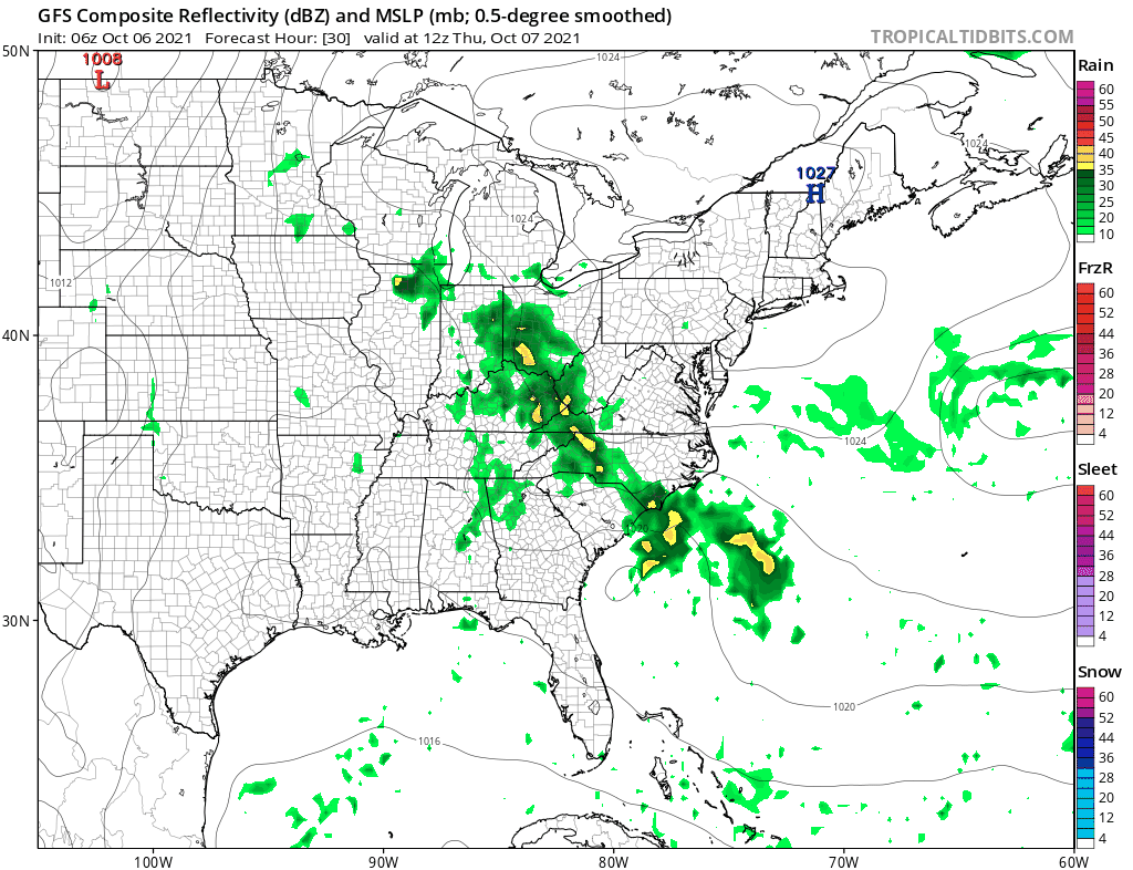 An upper ridge in the Eastern US is going to create somewhat stagnant conditions as far as the surface air mass is concerned. This is typical of this time of year where the longer October nights and a light onshore flow from off the ocean brings low clouds in at night and into the morning hours only to burn off to partly sunny skies as the day wears on. Some places will see their clouds burn off faster than others. The cold front that came through Monday is now stalled out in Southern Virginia and it will be sitting there for the rest of the week.