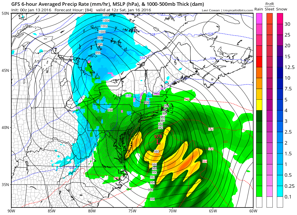 This storm does get fairly deep in intensity and there will be a good strong fetch of northeast winds. Notice that inland there is a struggle for snow even in the northern areas where it should be all snow as a given. But such is the winter of 2015-2016