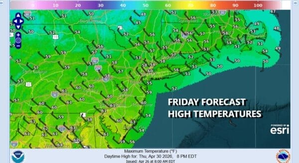 Cold air aloft will make for an unstable atmosphere Friday so any sun will likely give way to some developing clouds. There could be a few scattered showers that will pop up. The best chances for any brief showers will be away from the coast. It will also be quite cool with highs generally in the upper 50s and lower 60s. The weekend looks to be cool and dry however a wave on the old cold front will probably bring some high clouds Saturday and Saturday night and there is a chance that rain could clip areas in Southern New Jersey and points south for a few hours. Otherwise for most of you the weekend will be dry with cooler than average temperatures.