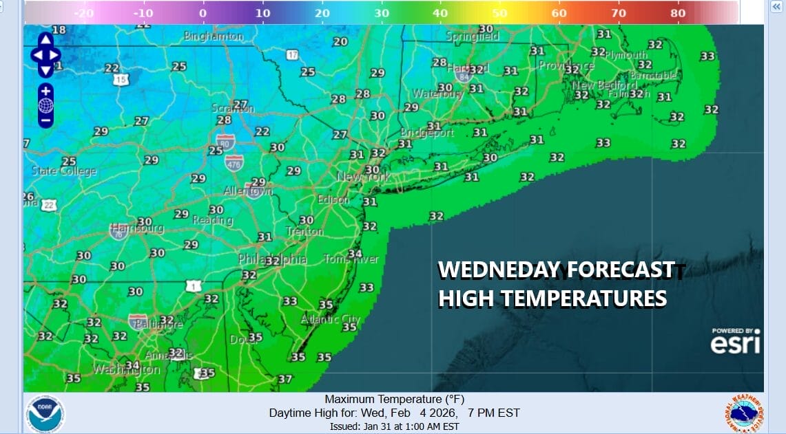 We do have a cold night ahead of us under clear skies. Thursday morning lows will be generally in the teens but inland areas will drop to the single digits. Thursday is looking like a nice day but on the cold side with sunshine. Temperatures Thursday afternoon will be a shade lower than today with highs in the upper 20s and lower 30s, and then down to the teens and single digits by Friday morning.