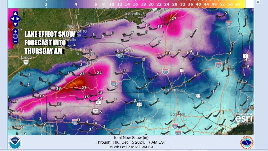 Once the fronts pass the Lake Effect snow machine fires up again Wednesday night into Thursday night while along the coast we are going to see clouds and some sun Thursday with leftover 40s for highs and then temperatures head down for Thursday night and Friday. Friday will be very cold with highs mostly in the mid to upper 30s with sunshine. Over the weekend the second diver comes through with a cold front Saturday night into Sunday morning. A quick warm up ahead of it and then a little colder behind it is what we expect with some rain and snow showers in between,