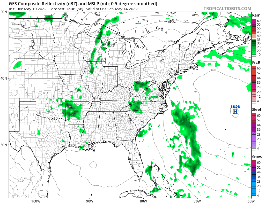 I’m going to throw in the chance there could be a few scattered showers as a possibility. I don’t think it is anything that wipes out either day. Then we will try and figure out what the deal is with the next trough and cold front. One thing that is a positive to focus on is that we do not have a blocking pattern ahead of us so with systems moving along, we will at least have some nice days in between weather fronts and temperatures trending back to near average for mid May.