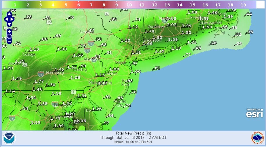 There will be a large amount in the variability of the rain amounts. Low pressure is coming out of the Tennessee Valley and will pass just east of New Jersey Friday morning. There is a warm front lying to our south at the moment which accounts for lots of cloud cover around. Some areas north of the coast are seeing some breaks of sunshine this afternoon. There is a little bit of everything for everyone.