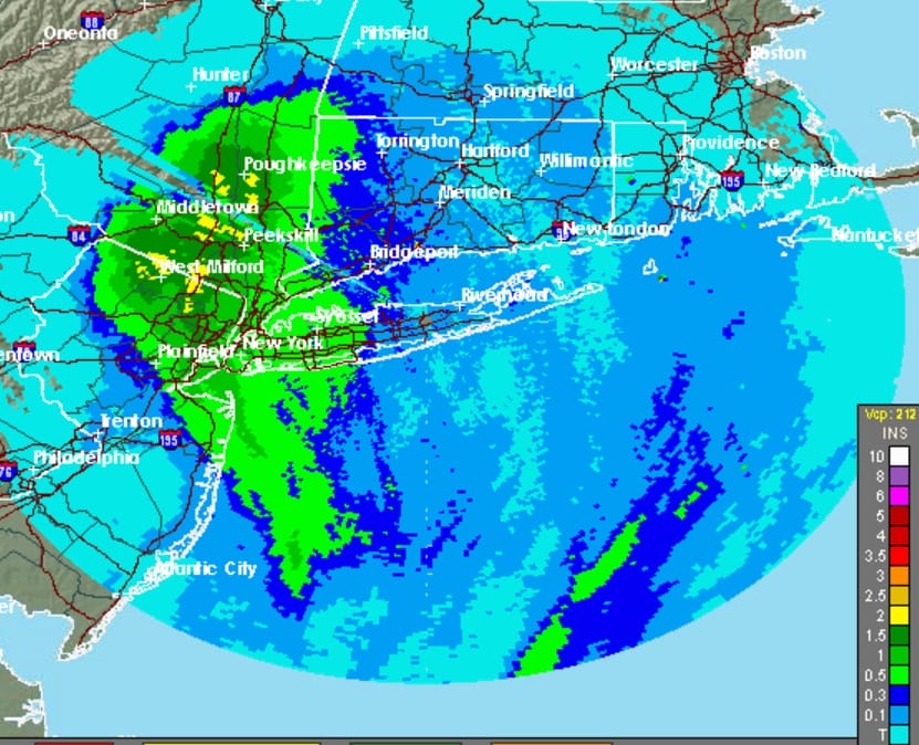 Amounts of 2 to 2 1/2 inches fell over parts of Northern New Jersey and the Hudson Valley with 1 inch plus amounts over a large area. This was a nice surprise considering the drought’s stranglehold over the area. There was even some lightning and thunder reported in some areas. Now the rains have moved to the north and weather conditions will begin to improve as we move into the evening though clouds could take awhile to get out of the way.