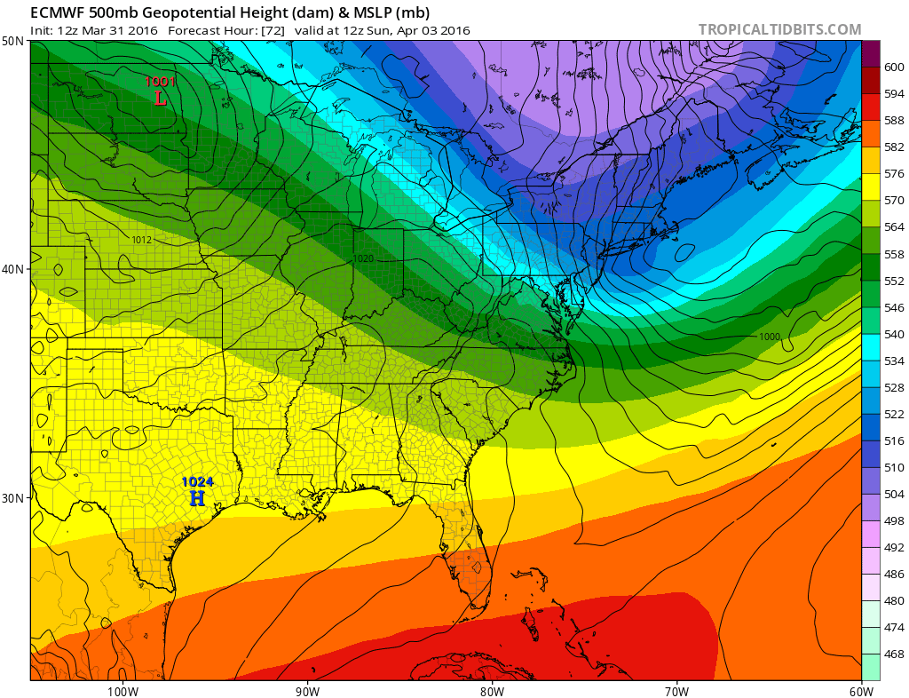 Euro Model Shows Strong Storm Developing Saturday Night