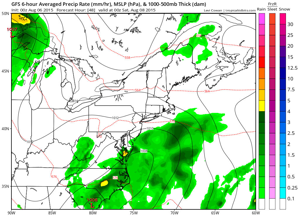 The European and the gfs both show coastal lows but with the unphased look at high levels the wave will be flatter in nature and further east. This means that rain will remain offshore with Southern New Jersey perhaps being the only area that gets into some rain for a few hours and this would be mainly for the southernmost counties later Friday night and early Saturday.