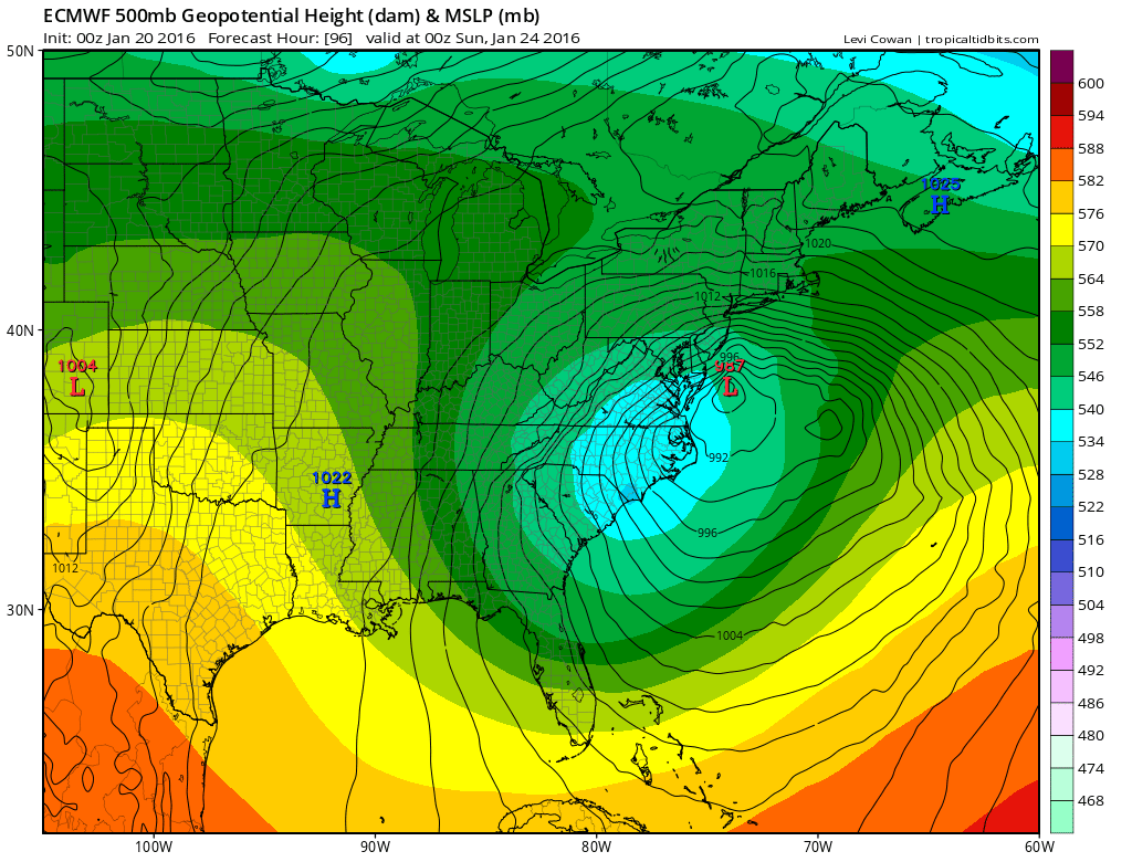 The differences in the two are subtle. They really aren’t that far apart. The GFS has the upper low tucked in a little further northwest than the European which probably accounts for the GFS having the heavy snow axis further north. But the surface lows are in about the same spots. This is going to make the forecast especially difficult because there will be a wall of literally miles where you will go from flurries to a few inches to many inches. The European tonight says that line between few and many gets close to New York City.