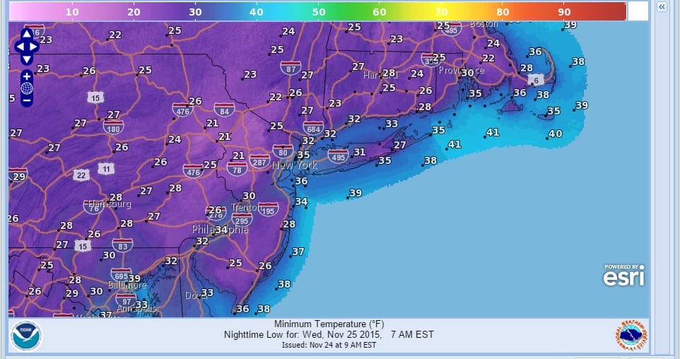 There weather issues today other than passing clouds that will be going through and you can see the real time satellite loop and radars below. There really isn’t too much going on as high pressure begins to move rebuild north and northeast of us. Temperatures this morning bottomed in the 20s and even some upper teens in the coldest spots in the Hudson Valley and New Jersey while most Long Island lows were in the 20s. Highs will be in the 40s today over most of the area.