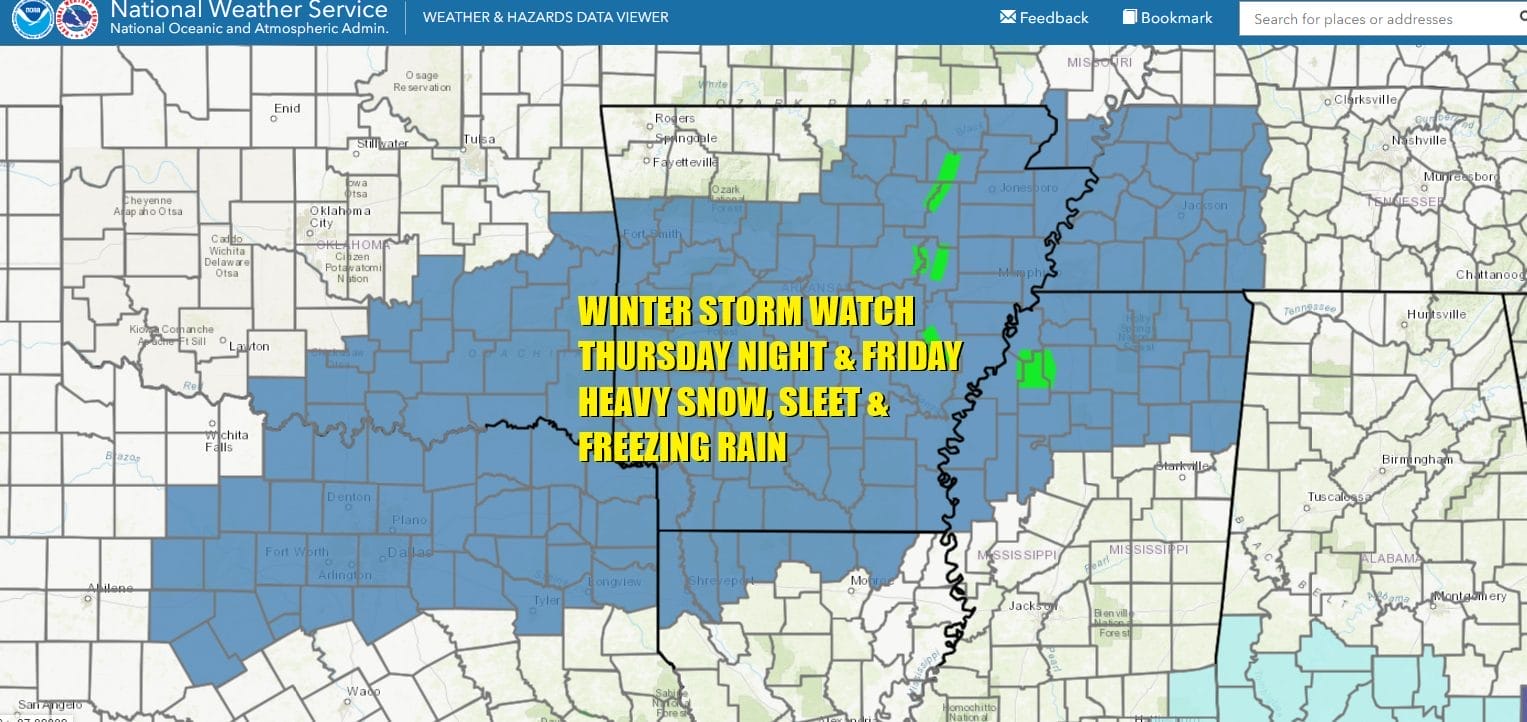 First Winter Storm Watches Up North Central Texas to Arkansas,