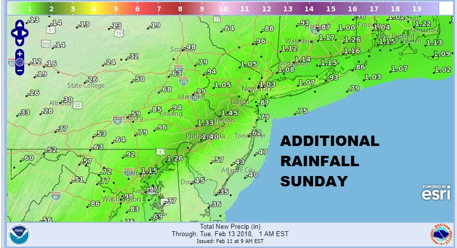 FLOOD WATCH RAINFALL FORECAST SUNDAY