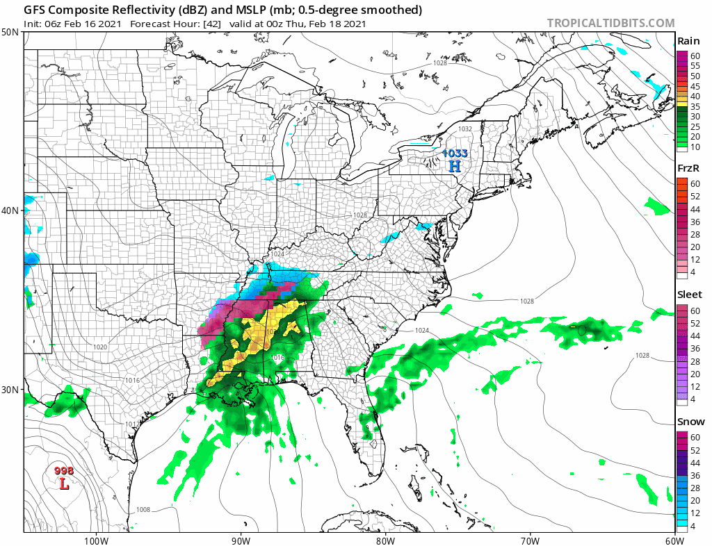 The last storm system of this series that began at the end of January lies ahead for Thursday. Unlike this one that went further north we think the risk here is that it goes further south. This argues for a front end thumping of snow possibility for Thursday and we already have snow forecast maps up from the National Weather Service.