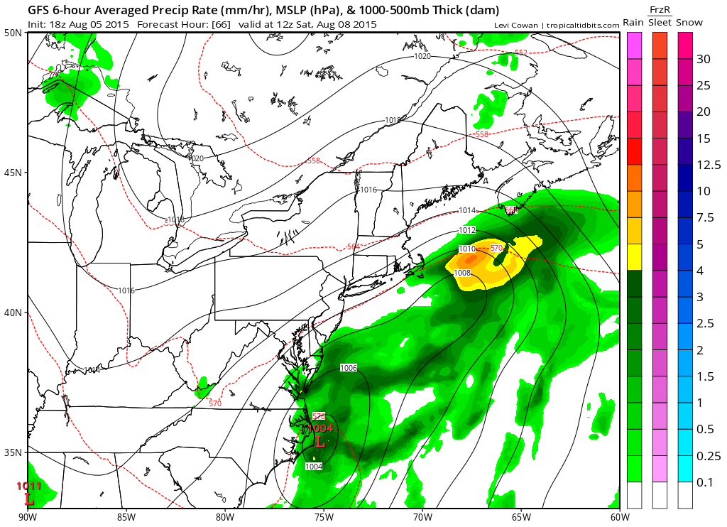 The 18z gfs continues to argue against the phased dynamic European look and would call for clouds and a northeast wind but the rain from the low to the south would stay offshore.