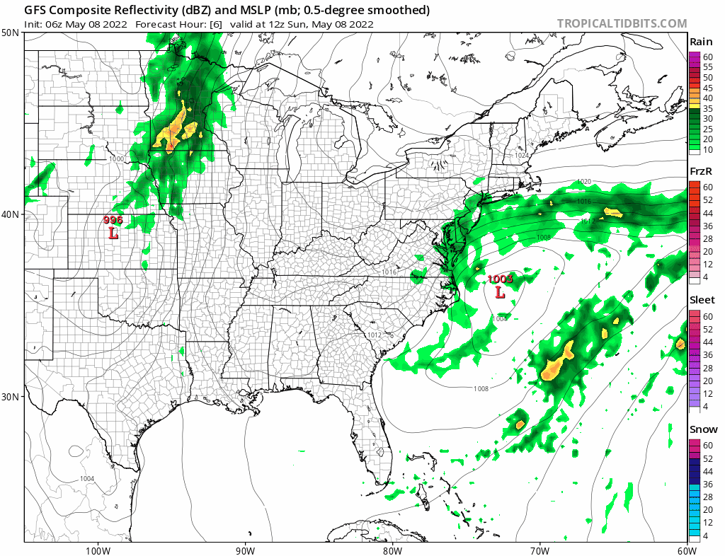 Happy Mother’s Day on what is another day of gloom and doom from Southern New England to the Middle Atlantic States. Our coastal storm which has brought rain of up to several inches in some places over the course of the last 2 days is starting to show signs of weakening and, more importantly, drifting to the south. To the northwest in Upstate NY and Northern New England there is lots of dry air and it is waiting to move southward. However not today as we will sit in lots of clouds all day long. There will still be patches of light rain or drizzle. Highs will probably struggle back into the 50s.