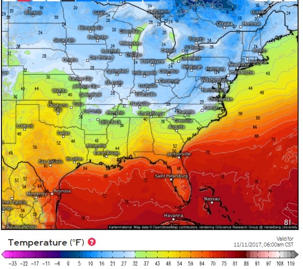 EUROPEAN FORECAST LOWS SATURDAY MORNING 11/11/2017