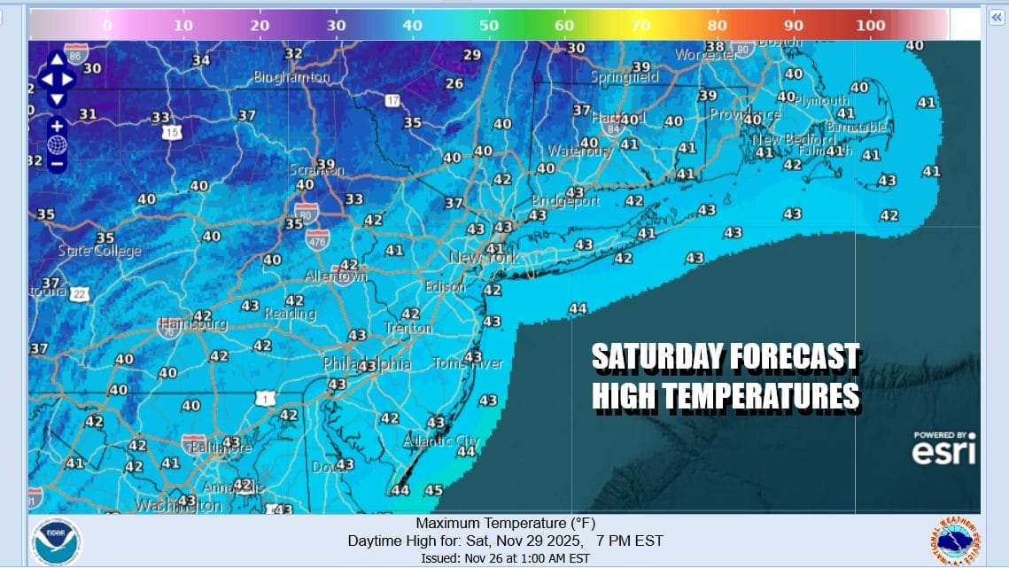 The cold weather lingers into the weekend with Saturday morning lows again in the 20s to near 30. Saturday dayside will see sunshine but most highs will only be in the lower 40s. The good news for Saturday is that the strong gusty winds will finally begin to ease as the core of the cold air mass moves overhead.