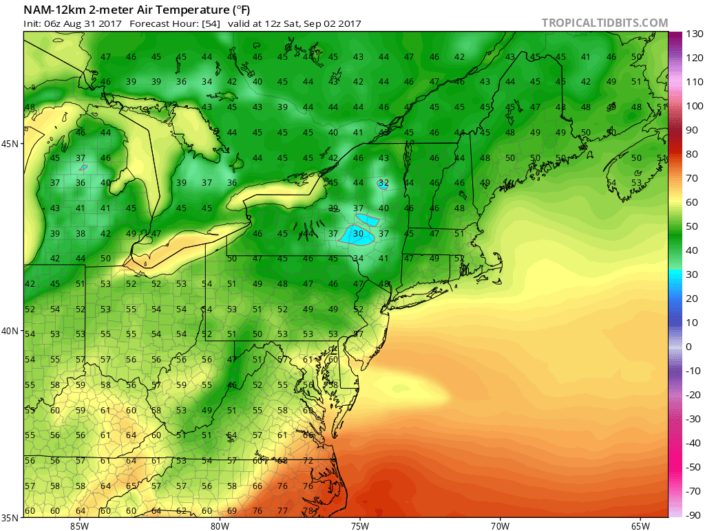 It appears that Saturday day side should be dry with sunshine giving way to some afternoon arriving clouds with highs in the 60s to near 70. There will be a wind from off the ocean which will keep temperatures in check. It appears that we will get a shot of rain Saturday night into Sunday morning. Most of the moisture from Harvey will be spent west of the Appalachians so it doesn’t appear to be a big deal for us. Weather conditions should improve Sunday afternoon with some sunshine returning and temperatures rising to the 70s to near 80. Monday Labor Day looks like a fine late summer day with sunshine and temperatures in the 80s.