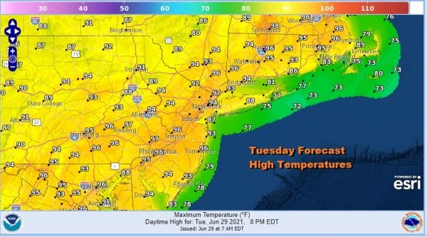 Temperatures will be a few degrees cooler at the shore. Watch for a pop up isolated thunderstorm mainly well inland. That pretty much covers things for today. Radars are mostly quiet for today into Wednesday morning. Tonight will be another steam bath with lows in the upper 60s to mid 70s.
