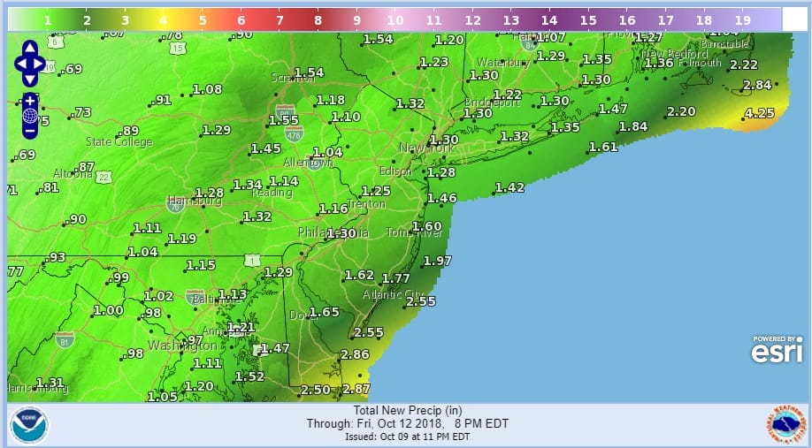Michael will likely make a close enough pass to graze Southernmost New Jersey with some additional rain early Friday but that should be as far north as it gets. Then as the cold front it is riding pushes further south a nice big high slowly builds in with very cool Canadian air.