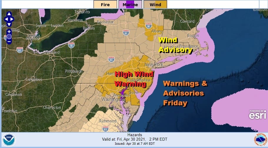 High Wind Warning Wind Advisories Posted Virginia to New England