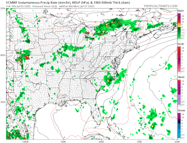 Monday also will be a day of very warm to hot and humid conditions. Temperatures will likely reach the upper 80s to near 90 degrees inland but it will be a little cooler at the coast given a south wind. There is the chance for some localized flash flooding and I would guess that the highest chance for that could be along the axis of heavy rain. That will basically lie across Eastern Pennsylvania and Western New Jersey.