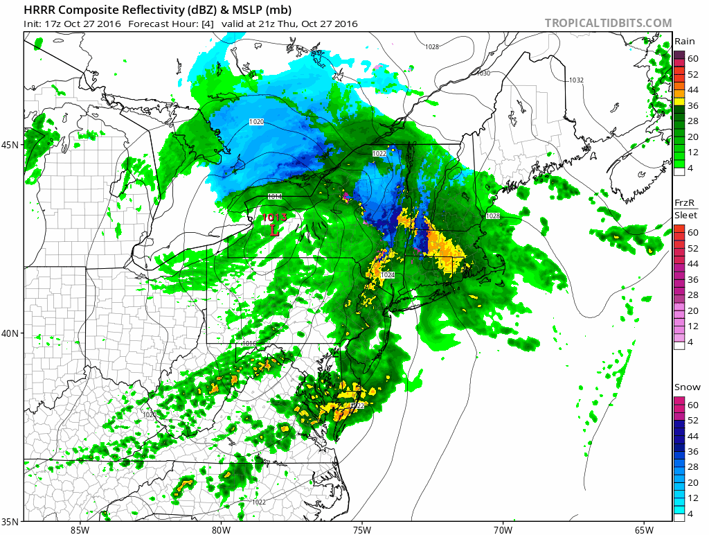 Rain is building up and we should get into a good shot of it this evening and the first part of tonight. The HRRR model shows rain and some thunderstorms developing throughout the evening.