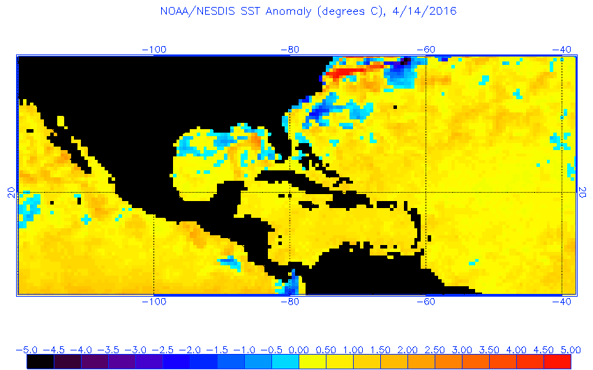Hurricane 2016 Outlook ATLANTIC WESTERN ATLANTIC SEA SURFACE TEMPERATURE ANOMALY 4/14/2016