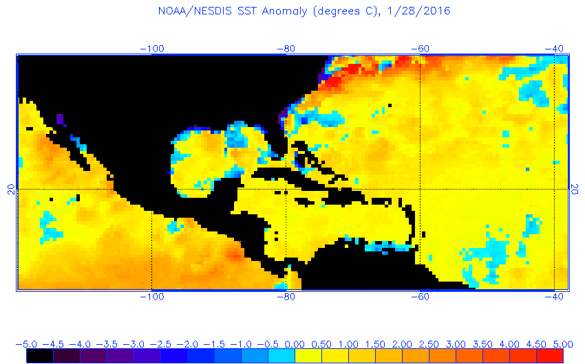 Hurricane 2016 Outlook ATLANTIC SEA SURFACE TEMPERATURE ANOMALY 01/28/2016