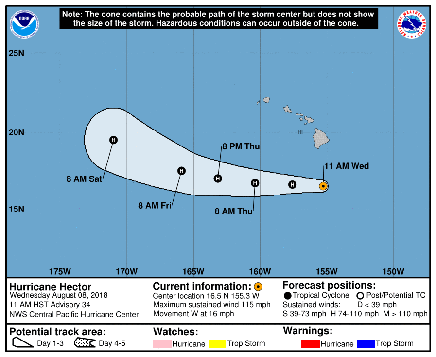 At 1100 AM HST (2100 UTC), the center of Hurricane Hector was