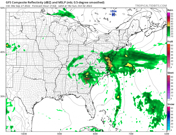The weekend forecast will hinge on the track of Ian which looks to drag its way northward inland in the Southeast US.  The dry high will start to weaken but there should still be enough of a high holding in that Satuday looks mostly okay, though there will be an increase  in cloud cover with highs in the 60s. Sunday the remnant low may still be meandering in the Southeast but some of the rain will start to push up the coast. Rain reaches Central New Jersey and Southeast Pennsylania by afternoon and likely further north into Southern New England Sunday night into Monday.