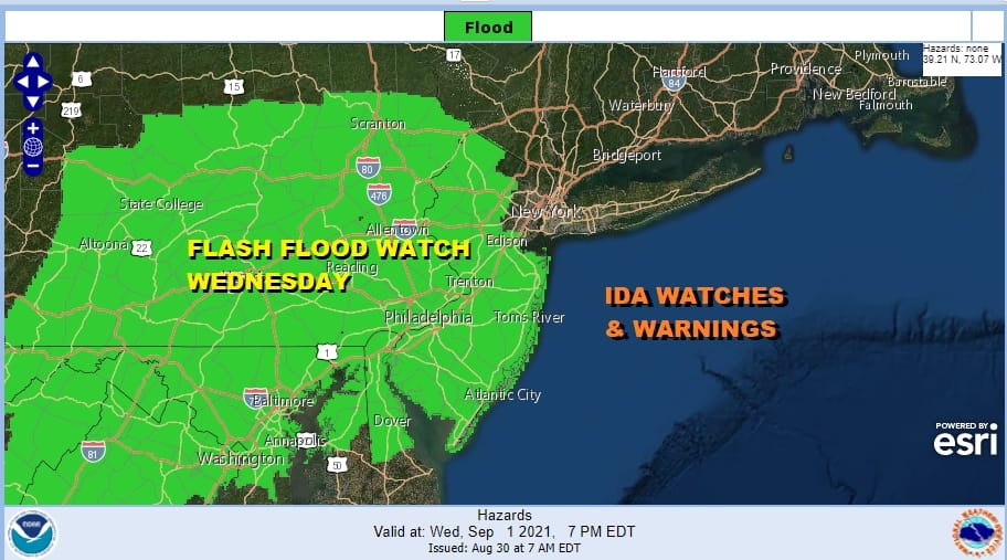 Ida Heading Northeast Flash Flood Watches Soaking Rain Wednesday