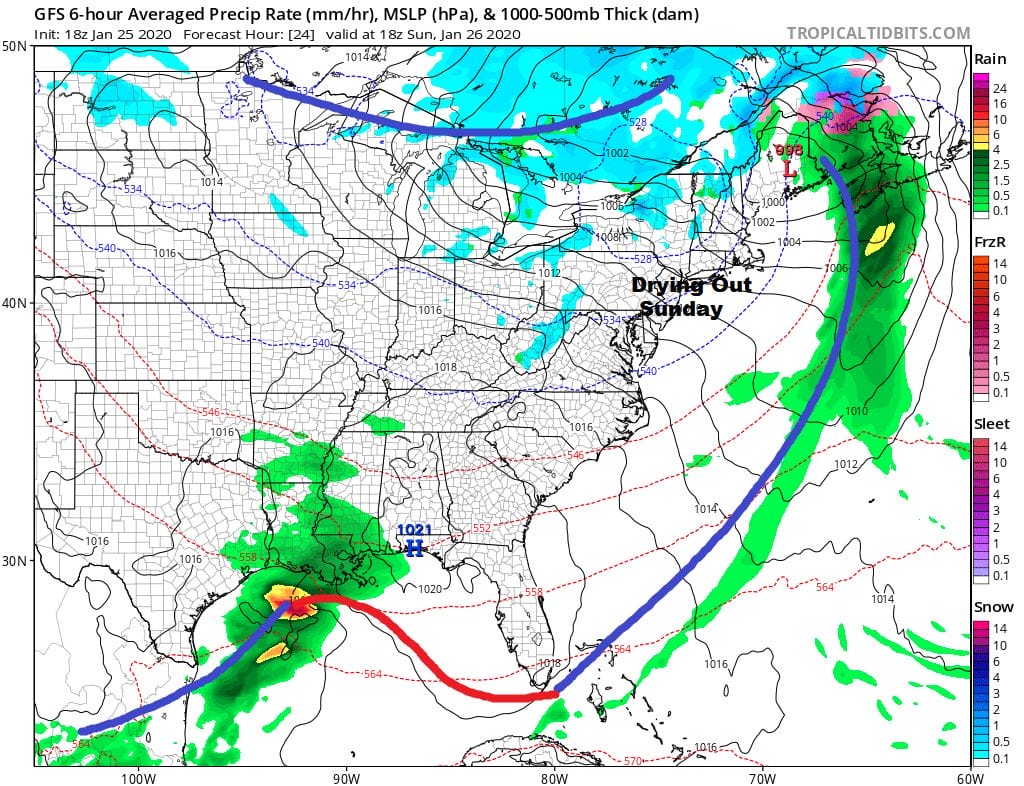The last low in the series moving across the Gulf States late this week will be the most important one as it turns up the East Coast. We are seeing increasing chances of a major storm developing from this however it should be noted that the amount of cold air that is around is minimal at best. Dynamics will ultimately drive the question of rain or snow when this system gets here next weekend. Models will still be moving things around in the coming days though the spread will narrow. We will discuss the prospects of this system, it evolution and other details on our weather platform on Patreon.